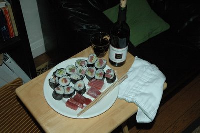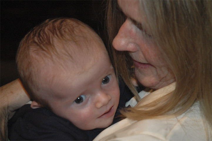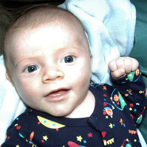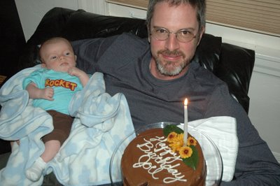 Rocket turns two months old today, and this evening for the first time his eyes tracked over to the television as we were watching Seinfeld. Uh oh! He is no longer oblivious to what we are watching. Time for us to shut off the tube. Maria says that watching the flickering screen harms the brain development of small children. (She then also said it harms the brain development of sedentary adults as well.)