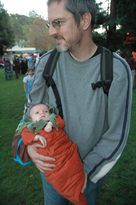 For his first Halloween, Rocket went as a carrot, courtesy of Maria's creation of a beautiful costume. We strolled through Peri Park in Fairfax (CA), THE see-and-be-seen spot that night.
